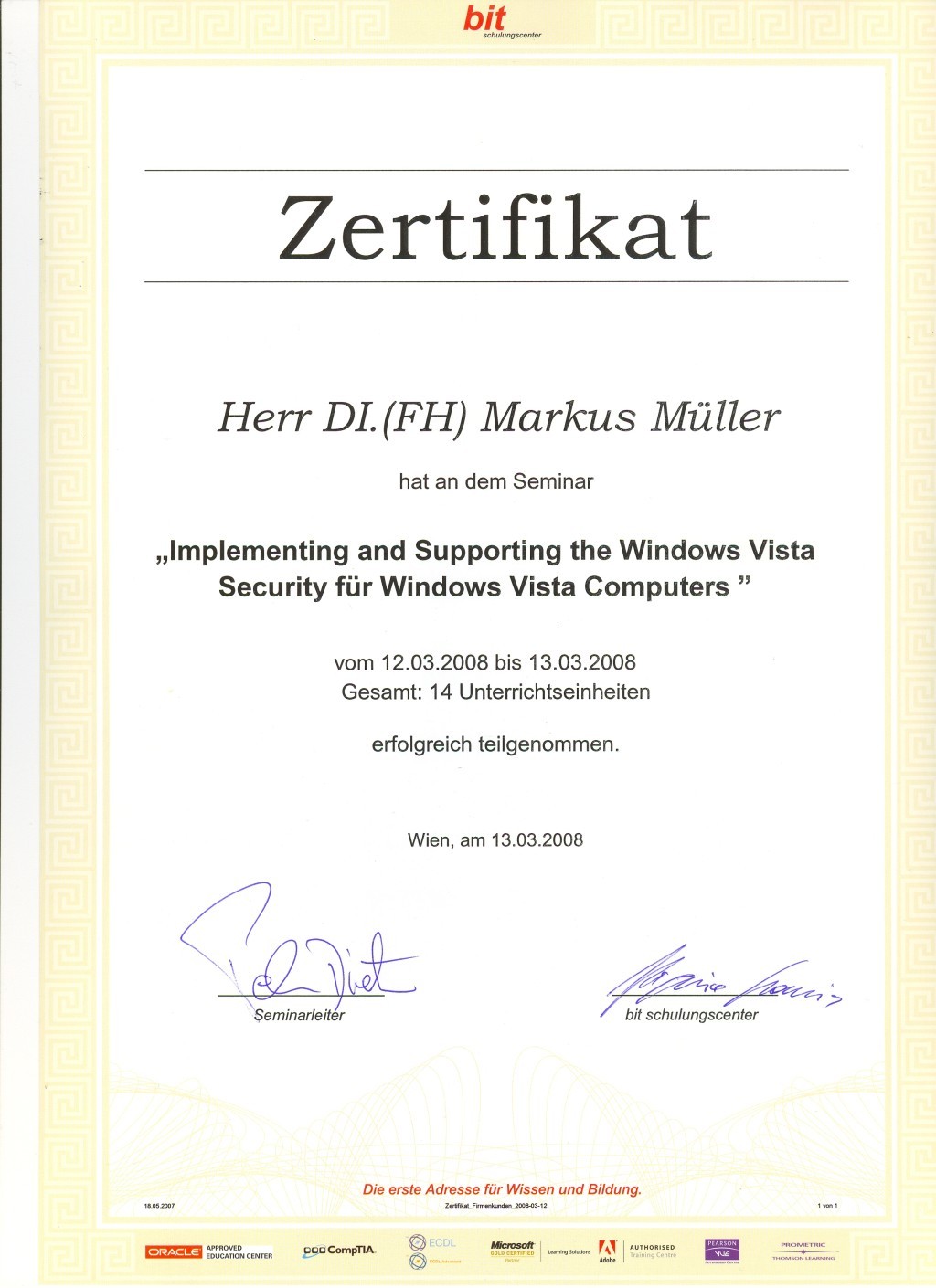 bit training for Windows Vista Implementing and Supporting Windows Vista Security