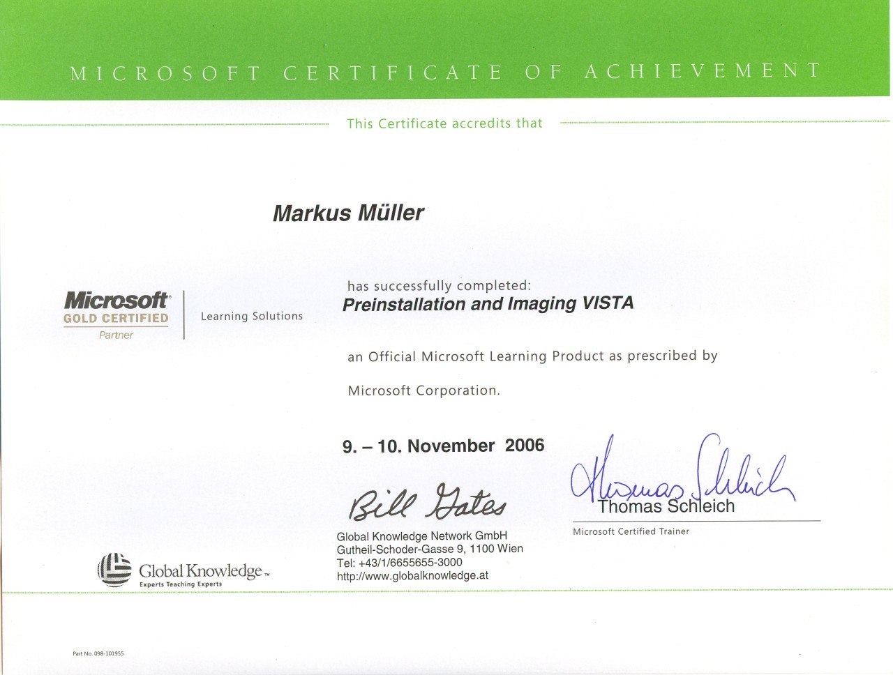 Global Knowlede training for Windows Vista preinstallation and imaging
